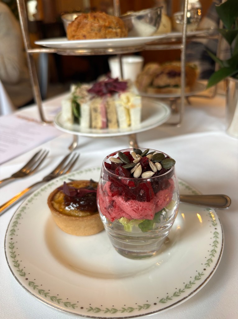 Walking into Betty’s, we were welcomed into a friendly and festive atmosphere. A special gluten-free menu was already laid on the table. The Christmas tree was decked out with twinkly lights and baubles, and the pianist was serenading the room with a mix of classics (think The Beatles and Elvis) with the occasional Christmas tune thrown in. I’m pretty sure that if the whole room had been on the prosecco afternoon tea and not just regular tea, a good old singalong would have broken out.